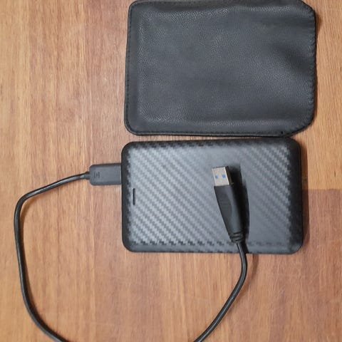 Verbatim ekstern harddisk 640 GB, mål: L: 20 cm, B: 11,5 cm, H: 4 cm, kun lidt brugt. Det er ikke sidste nye model, men den fungerer fint.