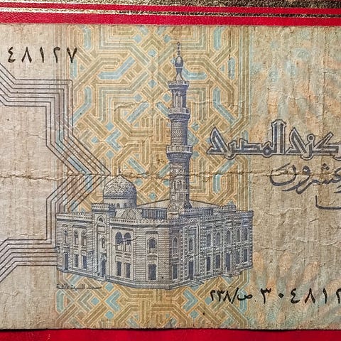 FLOT TÆT PÅ UNC! EGYPT EGYPTEN 20 PIASTRES / QIRSH 1984 (1404) Mosque of Mohamed Ali / Citadel of Salah El Din. Porto 25kr. Op til 100gram!