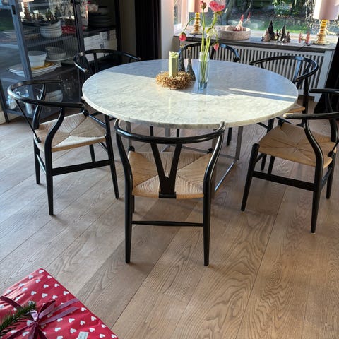 B. M. Shakerbord, 8 Y-stole med brune læderhynder.
