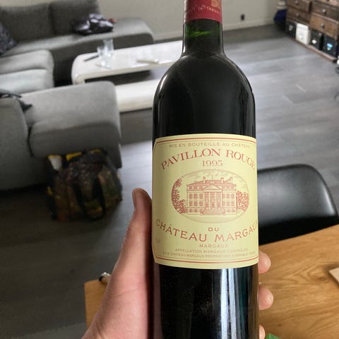 Krug Champagne flaske med tilhørende champagneglas og rød terning. Olie på lærred 70x60cm, 2025. Indrammet i smal svæveramme.