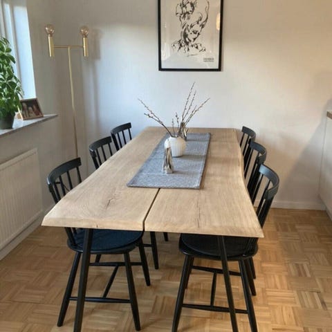 Super lækkert plankebord specielt produceret med massive eg planker fra privat skov i Sverige. Stel produceret i Jylland.