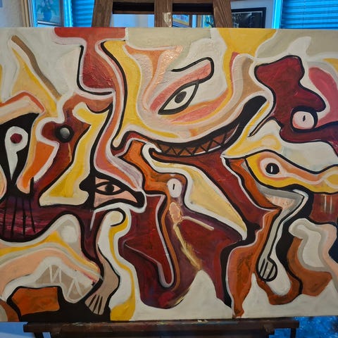 STOP MIG INDEN JEG DYKKER... akryl på plade i meget abstrakt univers...60×48. TBP ART..