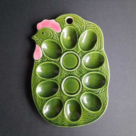 Super flot serveringsbakke til 10 æg + salt & peber - sættet er hvidt med lyserøde stafferinger.