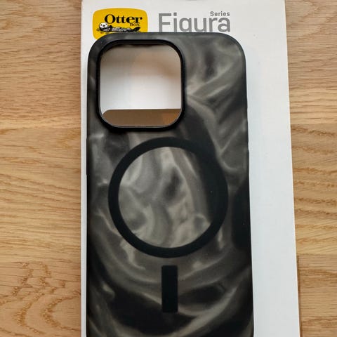 Apple OtterBox Symmetry mobilcover i sort farve. Ultra-slim design med drop-beskyttelse og præcise udskæringer. Fremstillet til at beskytte mod stød og ridser, kompatibel med MagSafe opladning.