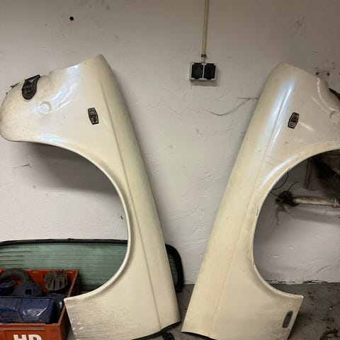 Højre frontskærm er i metal og har fået lavet rustarbejde.