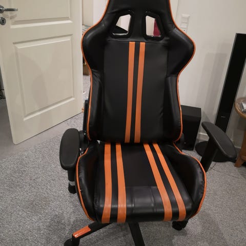 Mega lækker gaming stol, som nu skal have et nyt hjem, da jeg både ikke gamer længere men også er flyttet ud. Den fungere som den skal, det eneste der er med den at en af plastisk siderne sidder lidt løst, det er ikke noget som man lægger mærke til, eller noget som påvirker stolen :)