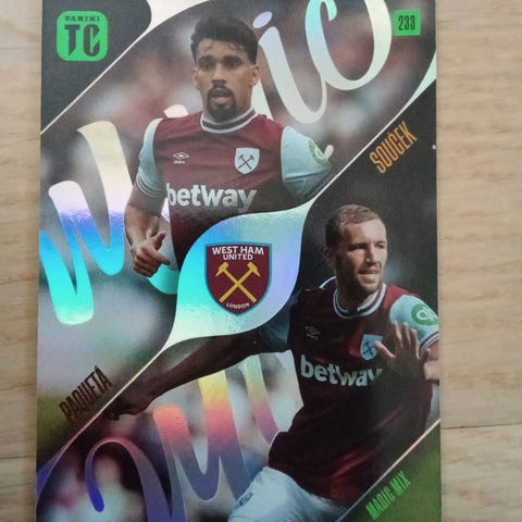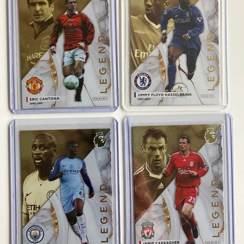 Panini Top Class Premier League fodboldkort med Arsenal spillere. Kortene viser spillere iført røde og hvide trøjer med Emirates Fly Better logo. Nummer 6 og nummer 2 er vist på bagsiden med positioner og taktikopstillinger.