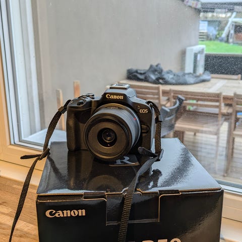 Sælger dette flotte Canon R100 samt tilhørende rf-s 18-45mm objektiv, et fantastisk kamera foto kit som har det nyeste hardware og software fra Canon, kameraet er stort set ubrugt og har skudt et par hundrede billeder og ser ud som nyt.