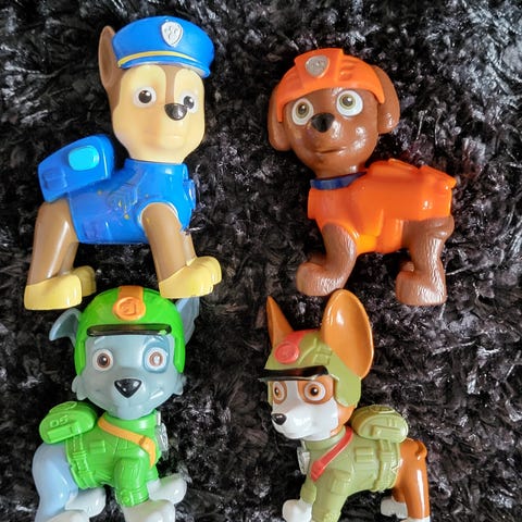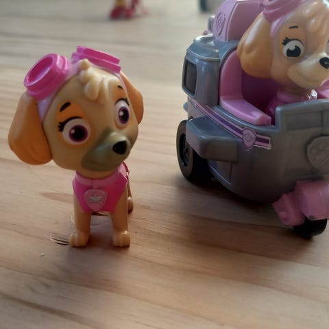 Paw Patrol figur legetøj lavet af plastik. Figuren er designet som en hund med blå og orange farver. Egnet til børn som samler eller leger med Paw Patrol legetøj.