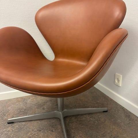 Flot svanen stol, Nypolstret i Cognac læder, med drejefunktion.
