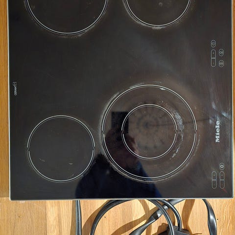 Miele KM 130 - keramisk indbygnings-kogeplade med varmholdningszone - 5 zoner ialt hvoraf 2 kan udvides - udvendigt mål: 75x51 cm - pladen kræver Miele betjeningspanel eller Miele ovn med betjeningspanel til do. Keramikpladen er intakt og uden ridser - alt virker.