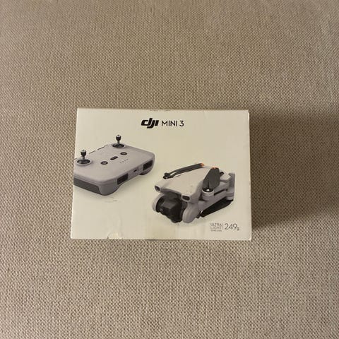 DJI Mini 3 drone med fjernbetjening. Kompakt og foldbar drone designet til nem transport og brug. Fjernbetjeningen har integreret skærm for direkte visning og kontrol. Velegnet til luftfotografering og videooptagelser.