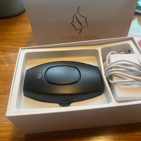 Hair Remover Elektrisk i pink farve. Indeholder enheden, oplader og tilbehør i original emballage. Designet til hårfjerning med elektrisk funktion.