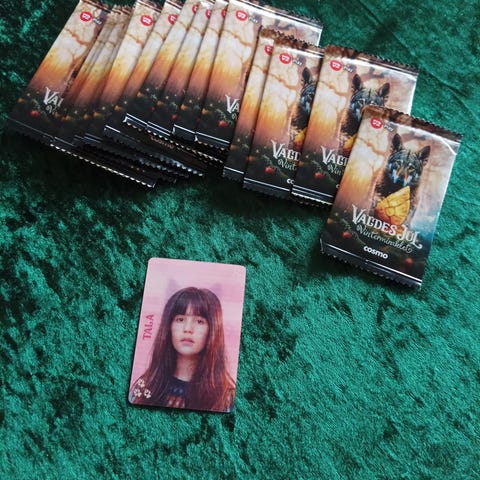 TALA børnebogskort med billede af en pige i grå trøje på gul baggrund. Kortet er designet til børn og kan bruges til læring og leg.