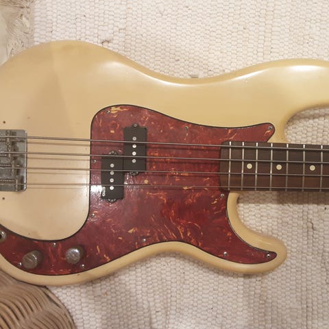 Super fed let cremefarvet p-bas fra 2003 med EMG (originale haves) Lyder som en p- bas skal.Kontakt tlf 22284044