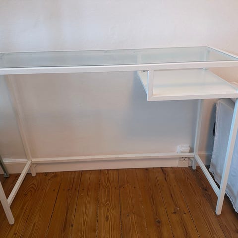 IKEA skrivebord med metalramme og hjul til salg. Målene er b:100 h:75 d:36 cm.