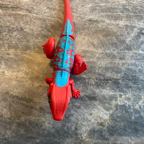 MakerWorks Soccer Bot robot model i blå plast med bevægelige arme og larvefødder. Designet til samling og programmering, egnet til uddannelsesformål og hobbybrug.