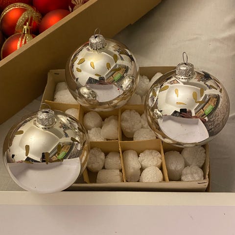 Antikt glas julepynt - gyldne julekugler