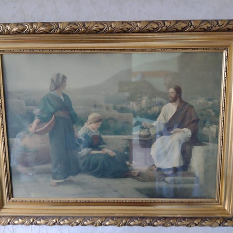 Klassisk sort/Hvid billede med Jesus og guldramme, kristusbillede