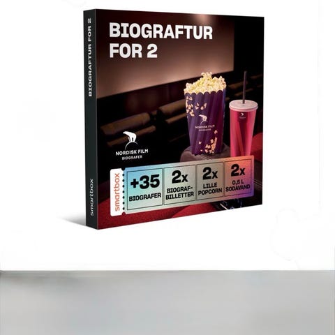 Biopakke til 2 personer med popcorn og billetter, eller valgfrie varer 40kr