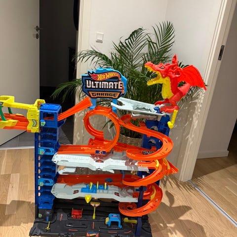 Stor Hot Wheels Ultimate Garage legetøj med flere niveauer og ramper til billeg. Designet til børn, der ønsker at lege med Hot Wheels biler i et garagemiljø med forskellige spor og funktioner.