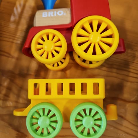 Libero tog.. meget blødt., fint lille tog.. man kan putte forskelligt i oppefra... se bl.a. den første vogn... sådan kan de andre vogne også trykkes ned og noget kan sættes i.. ELLER BARE BRUGE DET SOM KRAMMEDYR..