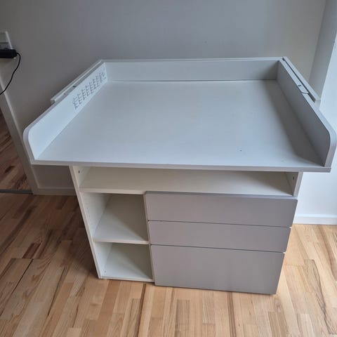Vi købte SMÅGÖRA puslebordet fra ikea den 7. juni og brugte det kun i 1 måned. På samme måde købte vi puslepuden i Jysk, og den blev også kun brugt i 1 måned. Derfor er den stadig som ny og i perfekt stand uden nogen buler eller ridser.