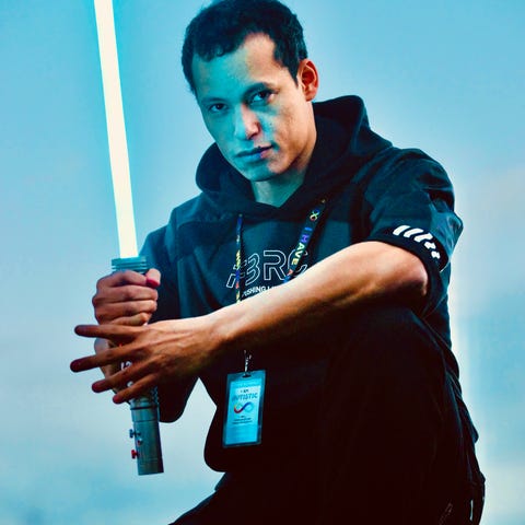 Kun brugt få gange til reklame review så virker som nyt. få mærker på bladet, fungere også med normalt LED lyssværd blad.