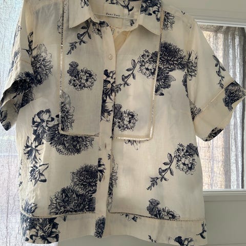 Part Two skjorte i blå farve, størrelse S, lavet af bomuld. Skjorten er cremehvis/blå
