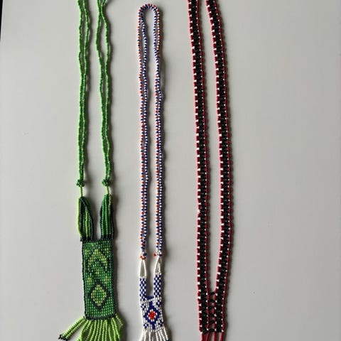 Halskæde, andet materiale, Grønlandsk halskæde, Ældre halskæde i udskåret ben og skind. L: 80 cm.m. Kan sendes efter aftale
