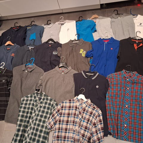 Ca 50 ass Diverso herre skjorter sælges. Blandede str primært str M pg L. De fleste er stadig i emballage, men bowlet er pakket ud.