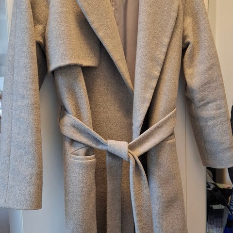 2NDDAY Frakke i grå farve, lavet af uldmateriale. Designet til kvinder i størrelse 38. Frakken har en klassisk pasform og lukkes med knapper. Den er velegnet til køligere vejr og kan bruges som yderbeklædning.