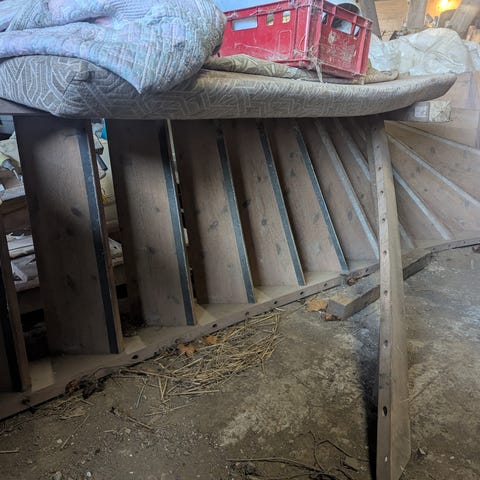 Ligeløbstrappe egetræs trin. Hvidmalet fra producent. 90cm bred, gulv til udtrin 293cm. Gælder følger ikke med men er fin uden. Kan nemt tilpasses i højden. Solid kvalitets trappe, afhentes samlet. Giv evt et bud.