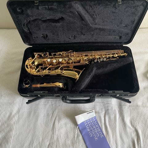 Yamaha YAS-275 altsaxofon i messing med guldfinish. Instrumentet leveres med et robust etui til opbevaring og transport. Velegnet til begyndere og øvede musikere.