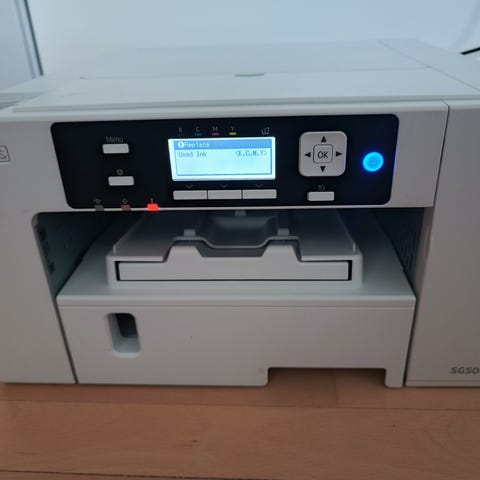Sælger komplet sæt indeholdende Saw grass SG500 printer A4 og semi automatisk varmepresse med rulleplade, 38x38.