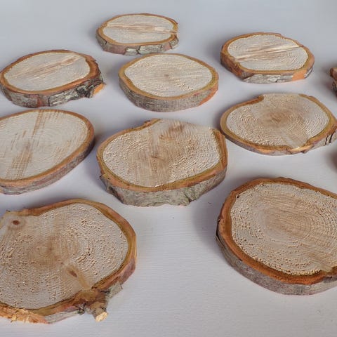 20 NYE assorterede Thuja Træskiver uden / med lidt bark - forskellige former