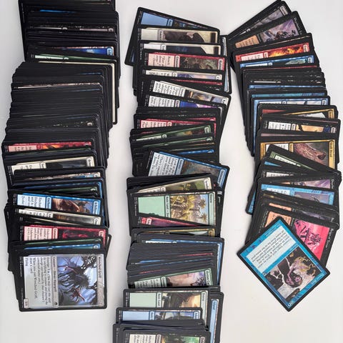 Sælger nogle bunker med blandede magic kort. Der er fra alle mulige serier, årgange og farver.