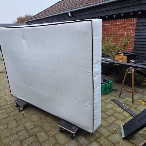 Velholdt boxmadras med topmadras og meder til gratis afhentning. (Billede ikke retvisende)