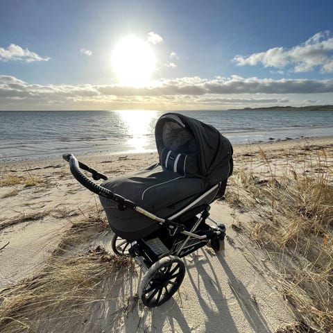 Alle hjul kan afmonteres og barnevognskassen kan slås sammen.