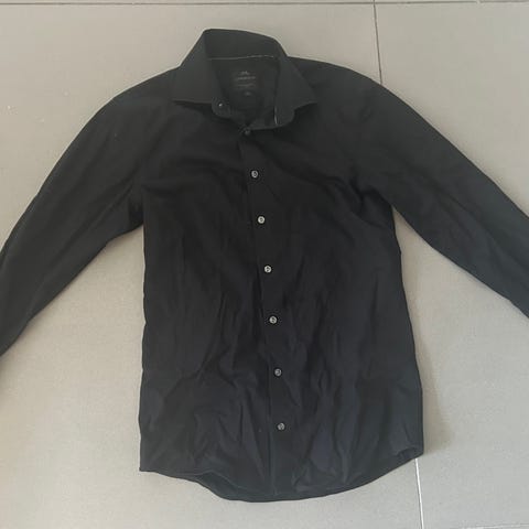 J. Lindeberg skjorte i sort farve, størrelse S til mænd. Fremstillet af bomuldsmateriale. Skjorten har lange ærmer og knaplukning foran.