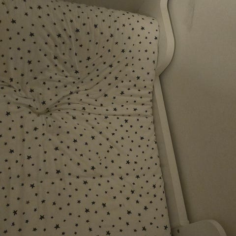 Der er to madrasser med (80x200cm), hvor betrækket kan vaskes. Er brugt begrænset som gæsteseng.