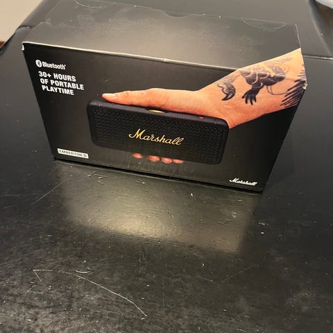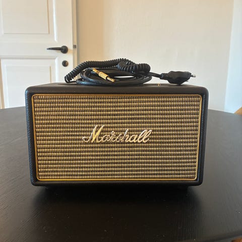 Marshall Acton højtaler med sort kabinet og klassisk gitterfront. Udstyret med kontrolknapper på toppen til justering af dit ønskede lydniveau og andre funktioner. Tilslutningsmuligheder inkluderer AUX kabel og Bluetooth. Designet til at levere lyd til forskellige musikoplevelser I VINTAGE stil!