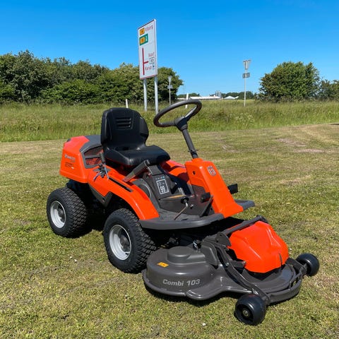 Husqvarna 520D med Combi 132X klippebord med hydraulisk højdejustering af klippehøjde. Monteret med blitzlys og central smørested for lejer på aksel. 4wd og dieselmotor