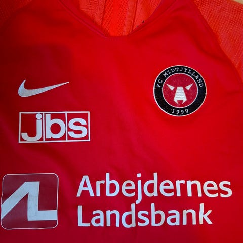 Et flot fodboldsæt i str 164. Lille i størrelsen. Min søn på 10 har brugt det og han er 140 cm.
