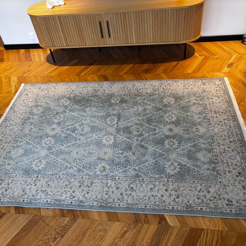 Tæppet stammer fra et røgfrit hjem med god udluftning. Det fremstår pænt uden større misfarvninger, men har lette brugsspor svarende til normal brug.