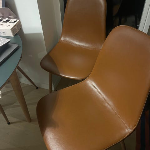 4 stk. Jonstrup spisebordsstole i grå med metal ven i egetræslook. Brugt og har pletter, som ikke er forsøgt fjernet, men jeg er næsten sikker på, det meste kan komme af. Der følger 4 stk. grå hynder med, som er i pæn stand. Prisen er for alle 4 stk. inkl. hynder. Skal afhentes I Charlottenlund.