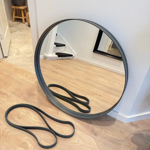 Rigtig flot HAY spejl med læderstrop. Diameter: 50 cm.