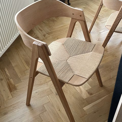 Lækker spisebordsstol i massiv eg/okselæder