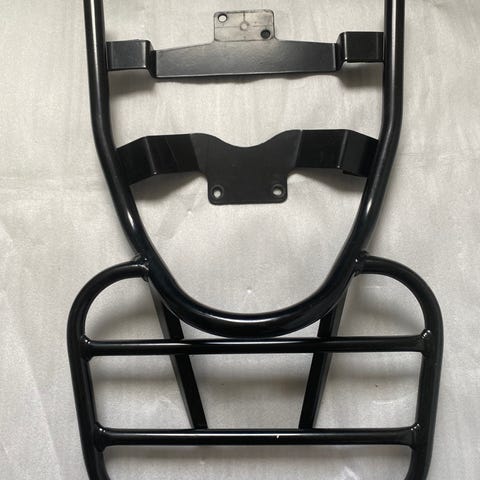 bagagebærer rød farve. Passer til specifikke . Fremstillet i holdbart materiale med sort metalramme og opbevaringsmulighed bag på knallerten 2005 ca årgang.