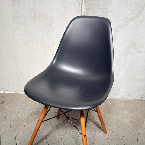 Eames Fiberglass Side Chair, model replika DSW Orange med stel i lyst ahorn og sort metal. Den smukke spisestol er tegnet af den amerikanske designduo Charles & Ray Eames.